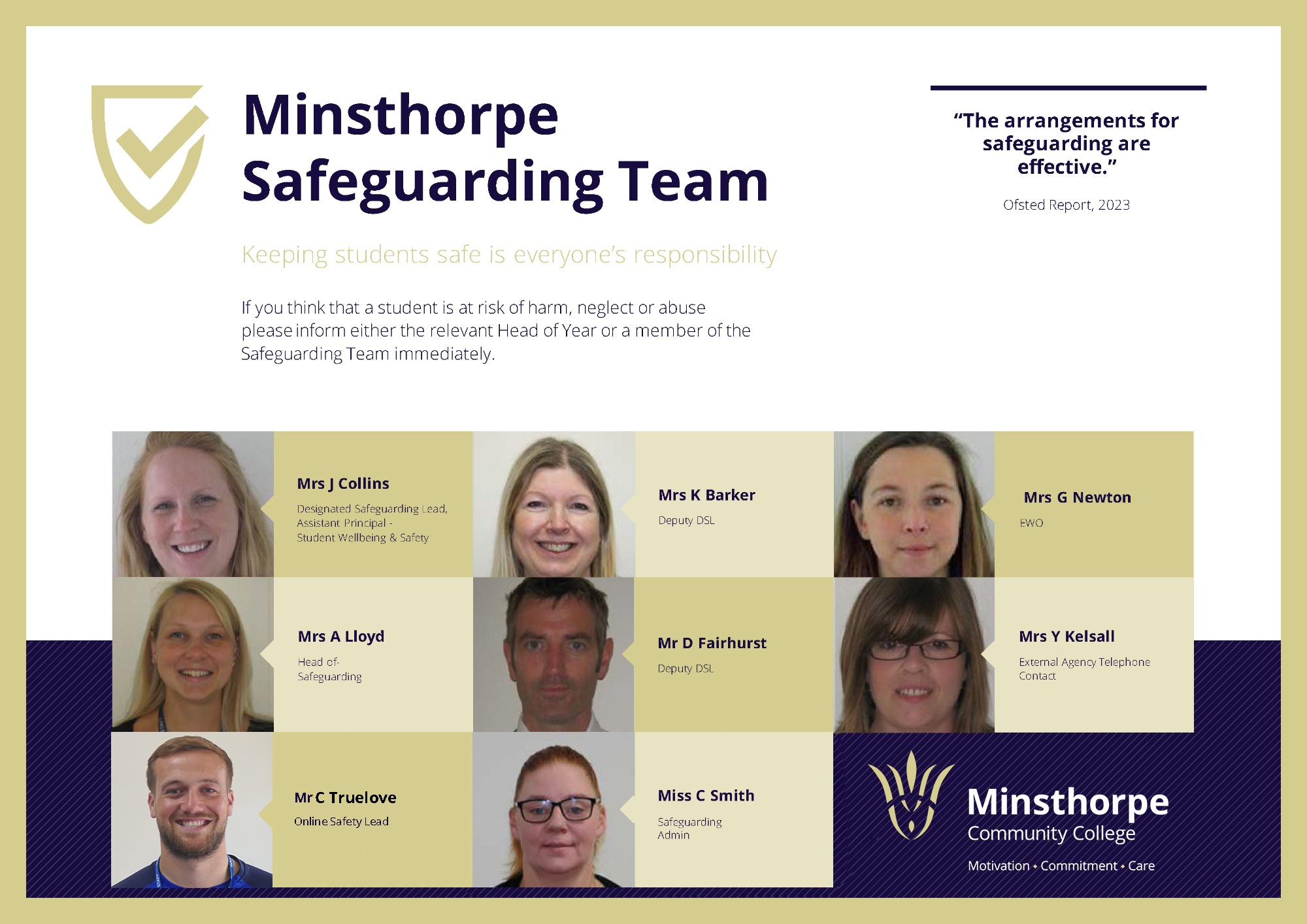Our College ethos ‘Motivation, Commitment and Care’ shows you that all staff at Minsthorpe Community College are MOTIVATED to provide you with the best CARE possible both in College and external to it.